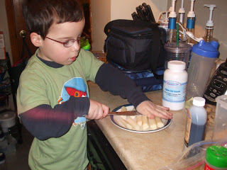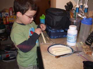 Melissa assured me that he was CLOSELY monitored as he cut the cheese sticks.