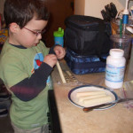 Melissa assured me that he was CLOSELY monitored as he cut the cheese sticks.