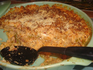 5. Pour into casserole dish. Top with bread crumbs and parmesan cheese and bake on 350 for 30 minutes.