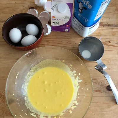 Obviously this thing starts with eggs. Even the name starts with egg. Alton’s recipe calls for four, so I used four!