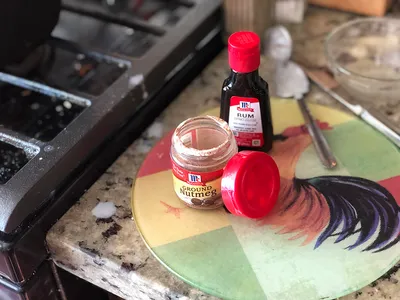- Add nutmeg and rum extract and stir. Transfer to a bowl, cover and refrigerate 2 hours.