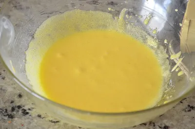 When you’re done, two things should have happened. First, the eggs will have thickened. Second, they will be a slightly lighter shade of yellow. If both those things happen you are good to go.