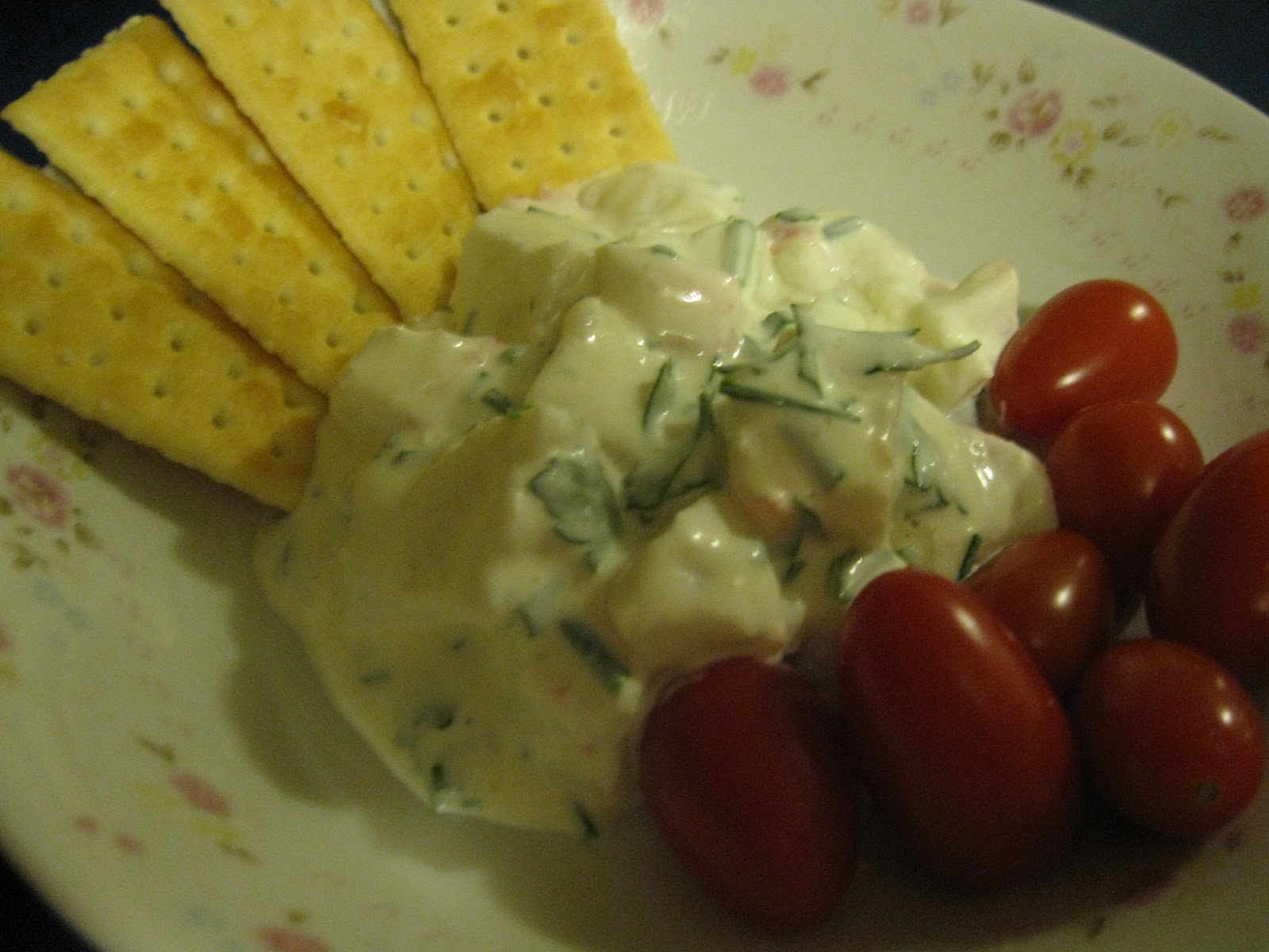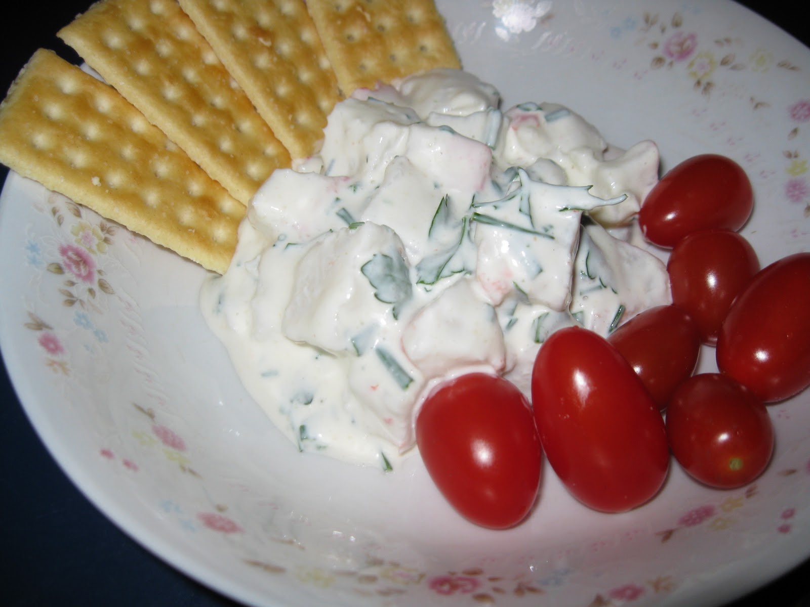 I had 2 packs of imitation crab meat that were purchased a couple weeks back with the intention of making my Crab Dip, but they got relocated to the back of the fridge and overlooked. (Hence the scheduled bi-weekly fridge cleanings, this is a common occurrence in a house with 3 adult males and 1 female. Oy.)