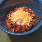 - Add tomatoes & chiles, salsa and black beans and mix well. Add broth or water until desired amount of liquid is achieved (NOTE: for you this may not require the whole two cups called for in the ingredients. You want soup but you don’t want to dilute your spices too much!).