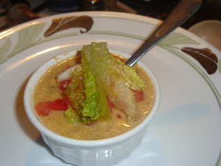 And once that’s done you’re good to go. Staying true to the original I did add the tomato and lettuce but I couldn’t bring myself to put it in the soup so I garnished. For two reasons. #1 in batch 1 the tomatoes ended up cooking on the reheat and that totally took away from the burger feel of the thing. And #2 not everyone is going to buy into the idea so it’s an easier sell all around if you put it on the side and let folks add what they want.