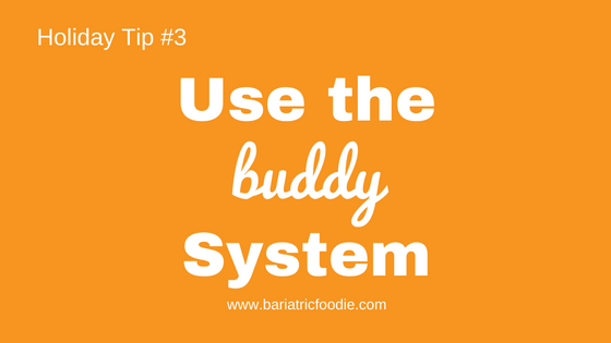 The key there, for me, was that the accountability buddy or group couldn’t just be about weight. For me it as also about emotional support (having someone to talk to who gets it). It was about new ideas (especially in my early post-op days when I didn’t know as much as I do now about remixing holiday food!) and it was about motivating one another, not only to be good to ourselves during the holidays, but also to enjoy the holidays.